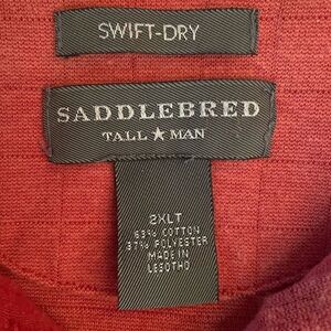 SADDLEBRED 2XLT men’s, short sleeve polo. Color is a faded red (purchased that color) 63% cotton 37% polyester made in Lesotho. Prices to sell!! Anything with 🔥is a limited time only!