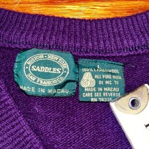 SADDLES 100% pure wool large purple sweater v neck winter macau preppy academia