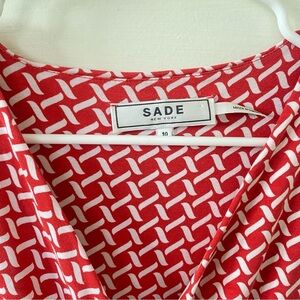 SADE NEW YORK Cap Sleeve V Neck Red and White Patterned Women's Dress Size 10