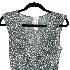 SADIE & SAGE Green Floral Dress W/ Elastic Waist Size Medium