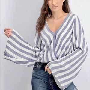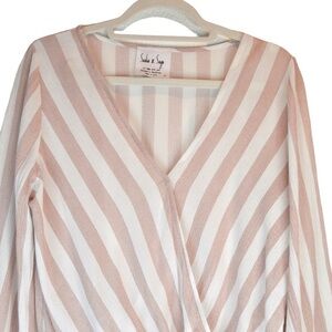 SADIE & SAGE V-Neck Crossover Bell Sleeve Top, Blush & White - Medium