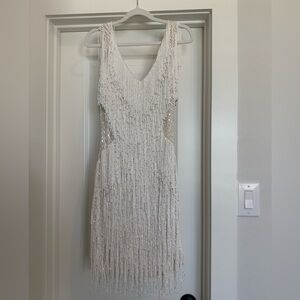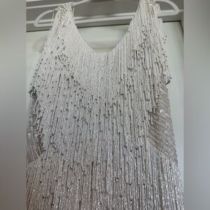 The SADIE is a real showstopper and the perfect white party dress for the bride. Individually hand embellished with white crystal waterfall beading and sequins with flat beaded panelling on the waist to accentuate your curves and flatter your figure.