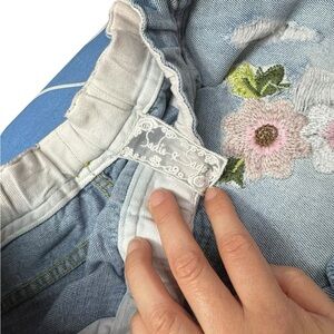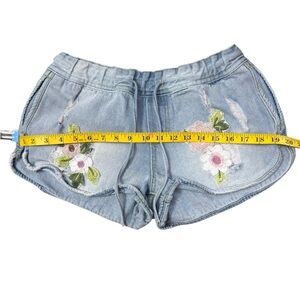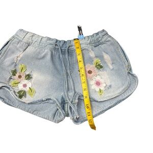 SADIE Y SAGE. Blue and Pink Floral Embroidered Jean Shorts