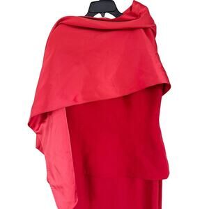 Description: Heavyweight crepe, stretch satin. Cape detail. Back zip fastening. Removable thin belt.