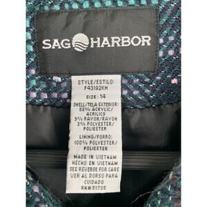 Sag Harbor Full Zip Jacket Blazer Green Black Multi Colorful Woven, Lined, Women's Size 14 FREE SHIPPING!