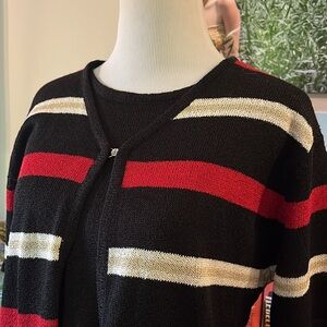 SAG HARBOR STRIPED SHORT SLEEVE TWINSET BLACK, RED, WHITE AND GOLD SIZE M