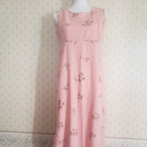 SAG HARBOR VTG PETITE PALE PINK PALM TREE DRESS WITH MATCHING CARDIGAN SWEATER