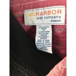 SAG HARBOR WOMENS BUTTON-UP STRETCHY LONG SLEEVE, SIZE 1X