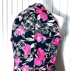Base Color Is Black With Fuchsia/Hot Pink & White Flowers.