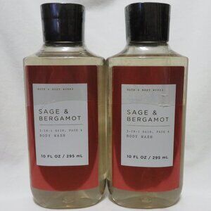 SAGE & BERGAMOT Bath & Body Works 3-in-1 Hair, Face & Body Wash 10 fl oz x 2
