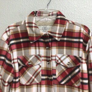SAGE Collective Shacket Womens Small Multi Red Plaid Sherpa Lined Button Front