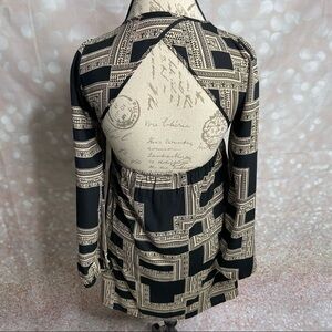 Lovely dress is fully lined except sleeves. Empire waist and large cutout in back. Elastic sleeve openings.