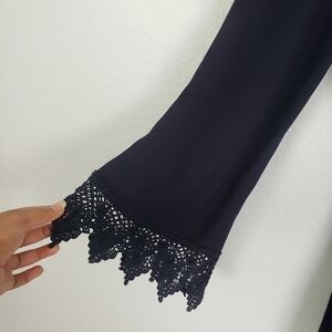 SAGE Faux Wrap Chrochet Long Sleeve Romper Navy Sz S Whimsigoth Stevie Nicks