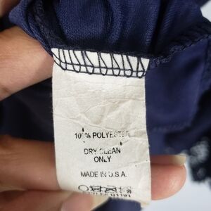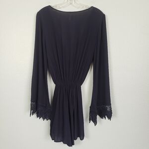 SAGE Faux Wrap Front Crochet Trim Sleeves Romper Navy Sz S