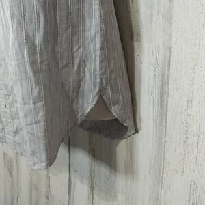 Sage the Label sweet nothings on or off-shoulder top with blue/gray and white stripes.