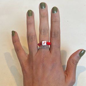 *Product Detail: Good Quality Beads. Elastic stretchy band. Half & Half Sagittarius Ring with Red Crystals & Bright Red Beads. (Message for custom horoscopes/ Bead color preferences)