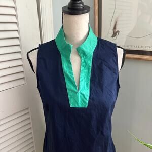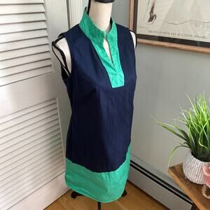 SAIL TO SABLE Dress Womens Medium Blue Green Mini Tunic Cotton Stretch Preppy