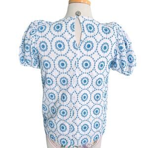 SAIL TO SABLE Floral Embroidered Top White/Blue Size Medium