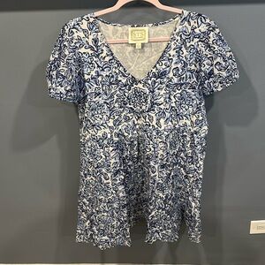 SAIL TO SABLE MEDALLION PRINT SHORT SLEEVE V-NECK DRESS 100% COTTON LINED L