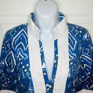 SAIL TO SABLE Bell Sleeve Caftan Midi Dress Nautical Blue and White Size XS. Ikat Print,