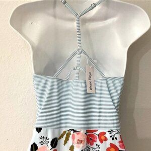 SAILOR BACK WATERFALL STRIPES FLORAL ONE-PIECE SWIMSUIT