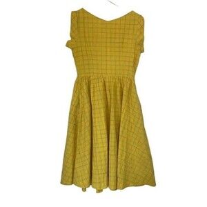 SAINT GERALDINE Albern Plaid Retro Chrissie Midi Dress Yellow Mod Pin Up Medium