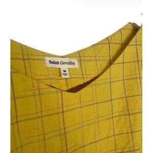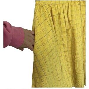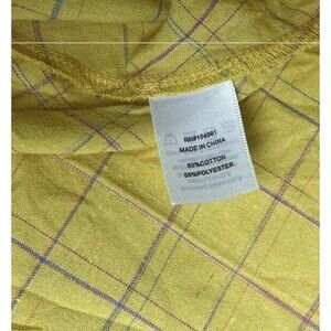 In like-new condition. No signs of wear. No flaws. A bit wrinkled. Beautiful pale yellow with a cotton/linen feel. Subtle green/purple/ pink plaid pattern.
