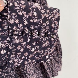 SAINT HELENA Chiffon Floral Purple Smocked Long Sleeve Dress SIZE S Pockets