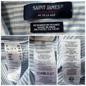 SAINT JAMES Christina Linen Striped Shirt Dress, Blue/white, Size 8 US/40 FR(EU)
