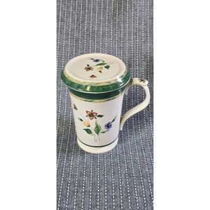 SAINT JAMES HANHOOK FINE CHINA WILD FLOWER CUP WITH LID /COASTER