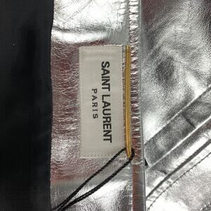 SAINT LAURENT 2022 Size 4 Silver Leather High Waist Mini Skirt