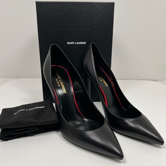 SAINT LAURENT Anja 85 Leather Pumps in Black Sz US 7.5