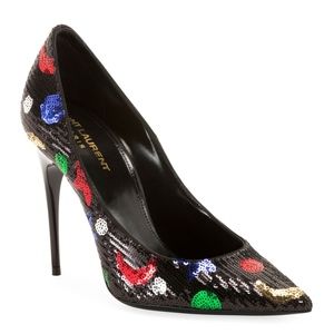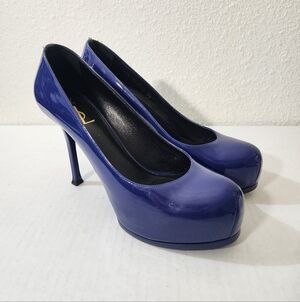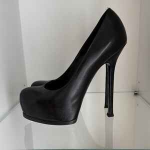 SAINT LAURENT Avenue Slingback Pumps Patent Black Leather