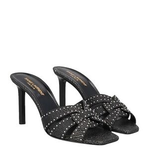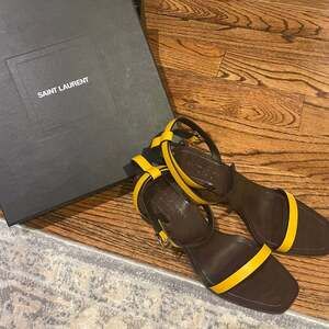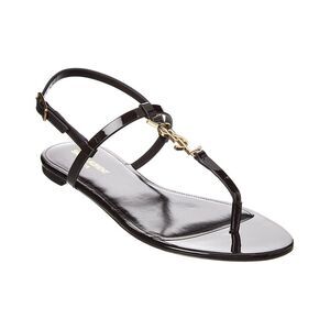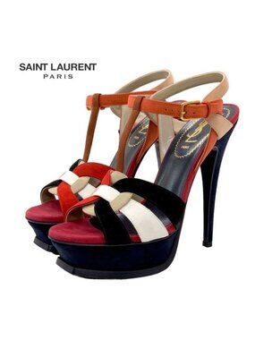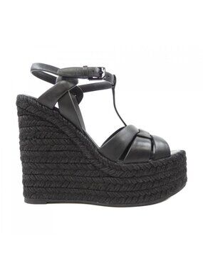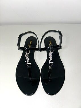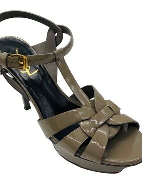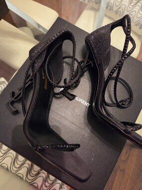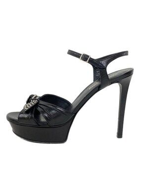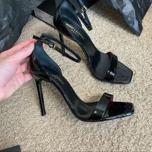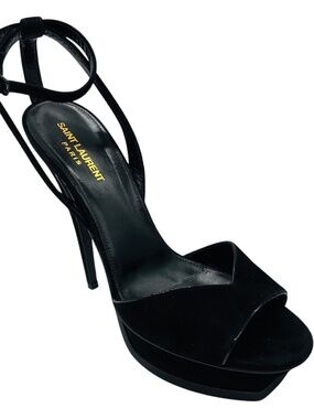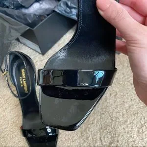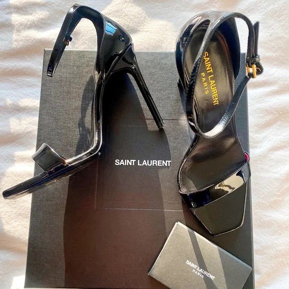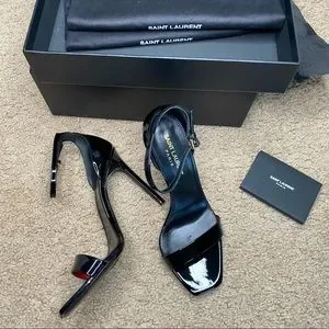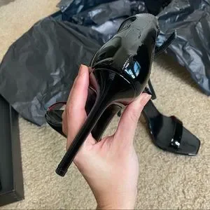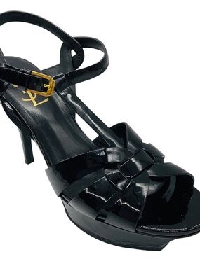 SAINT LAURENT BLACK PATENT VERNICE CHIFFON LEATHER HIGH HEEL SIZE 37 /7