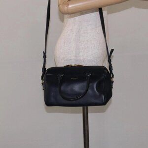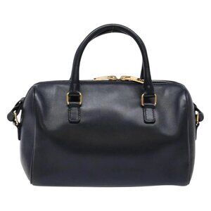 SAINT LAURENT Baby Duffel Hand Bag Leather 2way Navy Gold Auth 133987