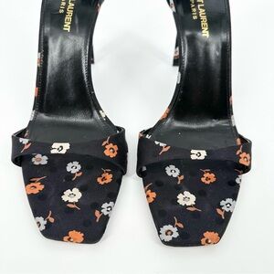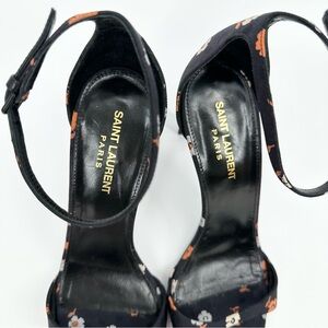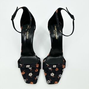 SAINT LAURENT Bea Ankle Strap Sandals Heels Polka Dot Floral Mixed