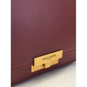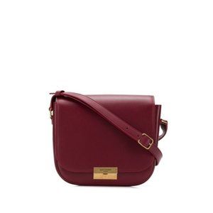 This dark red lamb skin Betty satchel from Saint Laurent features a foldover top with push-lock closure, a gold-tone logo plaque, an internal slip pocket and an adjustable shoulder strap.