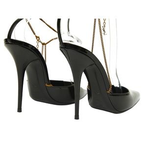 GUARANTEED AUTHENTIC SAINT LAURENT BLACK PATENT LEATHER CLAW CHAIN PUMPS