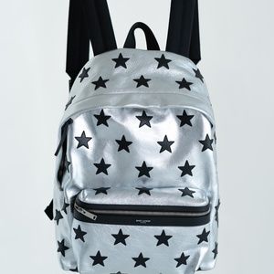 SAINT LAURENT Black STAR Silver Leather Backpack