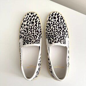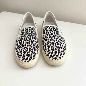 Women's SAINT LAURENT Black/White Leopard Print Canvas Slip-On Sneakers!