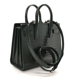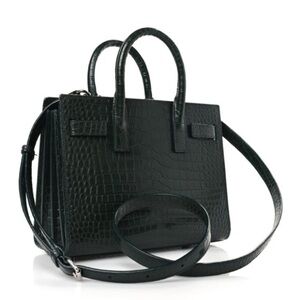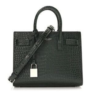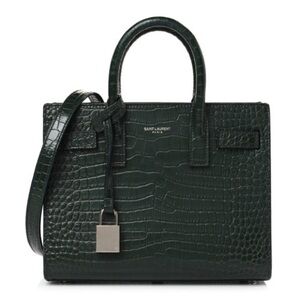 SAINT LAURENT Calfskin Crocodile Embossed Nano Sac De Jour Dark Green