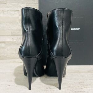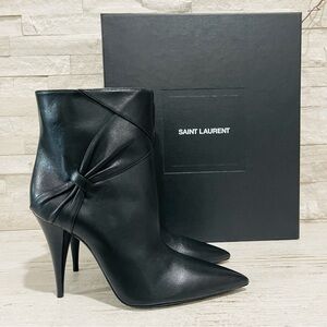 SAINT LAURENT Calfskin Kiki 100 Pointed Toe Bow Ankle Boots Bootie SZ 37.5 NEW