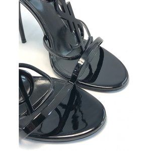 SAINT LAURENT Cassandra Patent Leather YSL Logo Sandals