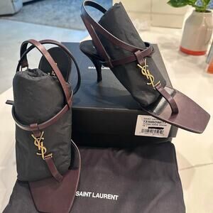 SAINT LAURENT Cassandra YSL monogram logo leather sandals MSRP $1,150 EU 38.5