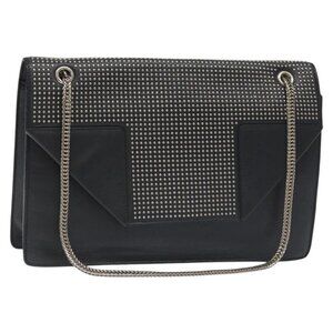 SAINT LAURENT Chain Betty Shoulder Bag Leather Black Silver Auth 130120