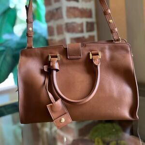A sleek and structured satchel in supple calfskin, featuring Saint Laurent's understated Y-shaped hardware for a modern twist. The compact size keeps it polished, while the top handles and optional crossbody strap offer versatile carrying options. Timeless enough for daily wear, yet sharp enough to elevate any outfit. B+ Very Good Condition