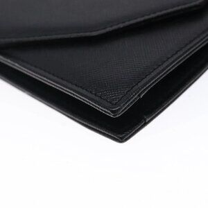SAINT LAURENT Clutch Bag Leather Black Gold Auth yk18741