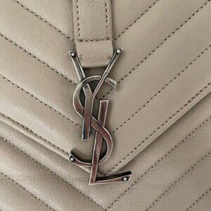 Medium College Leather Shoulder Bag in beige lambskin leather and brushed silver-toned hardware with chevron-quilted overstitching