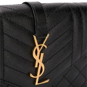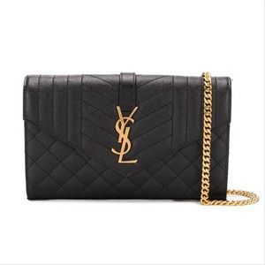 SAINT LAURENT Envelope monogram quilted leather wallet on chain shoulder bag