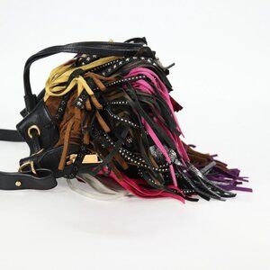 SAINT LAURENT Fringe Shoulder Bag Leather Black Gold Auth 121510M